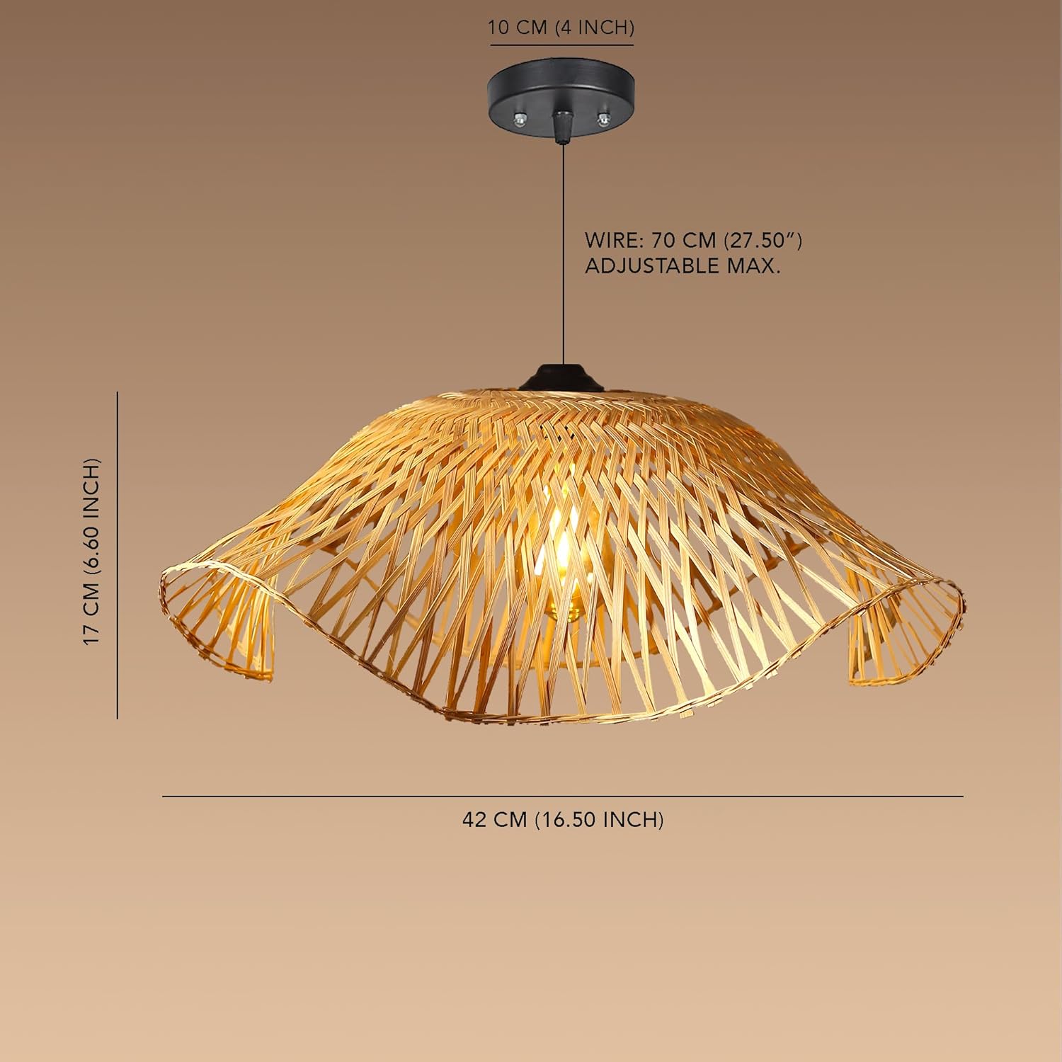 - Dimensions: L 42 cm x W 42 cm x H 17 cm. Package Contents: Includes 1 Bamboo Lamp, 1 Bulb, and mounting hardware.